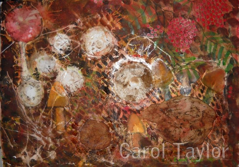 This show also includes a painting called "Forest floor" from 2011, from a series of paintings I made based on Mycorrhizal Fungi. Both the painting, which includes collaged real mushroom spore prints and the wood engravings came from years of collaborations with my brother Dr Andy Taylor, a Mycologist and senior research scientist at the Hutton Institue in Aberdeen.